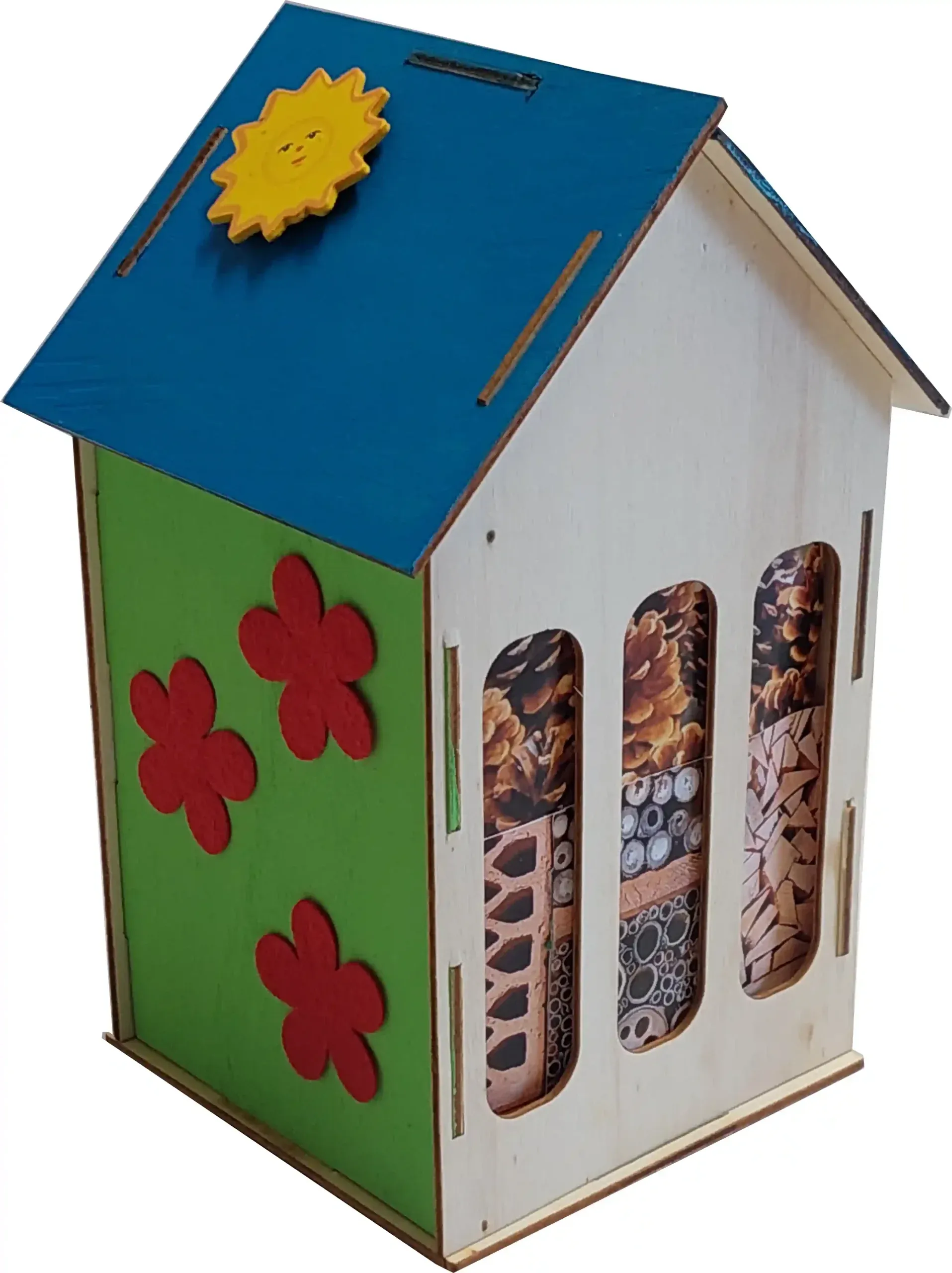 Das Insektenhaus kann von außen von den Kindern schön bemalt werden und so zu einem individuellen Kunstwerk werden. Das Bemalen des Insektenhauses fördert die Kreativität und gibt den Kindern die Möglichkeit, ihre Persönlichkeit zum Ausdruck zu bringen.